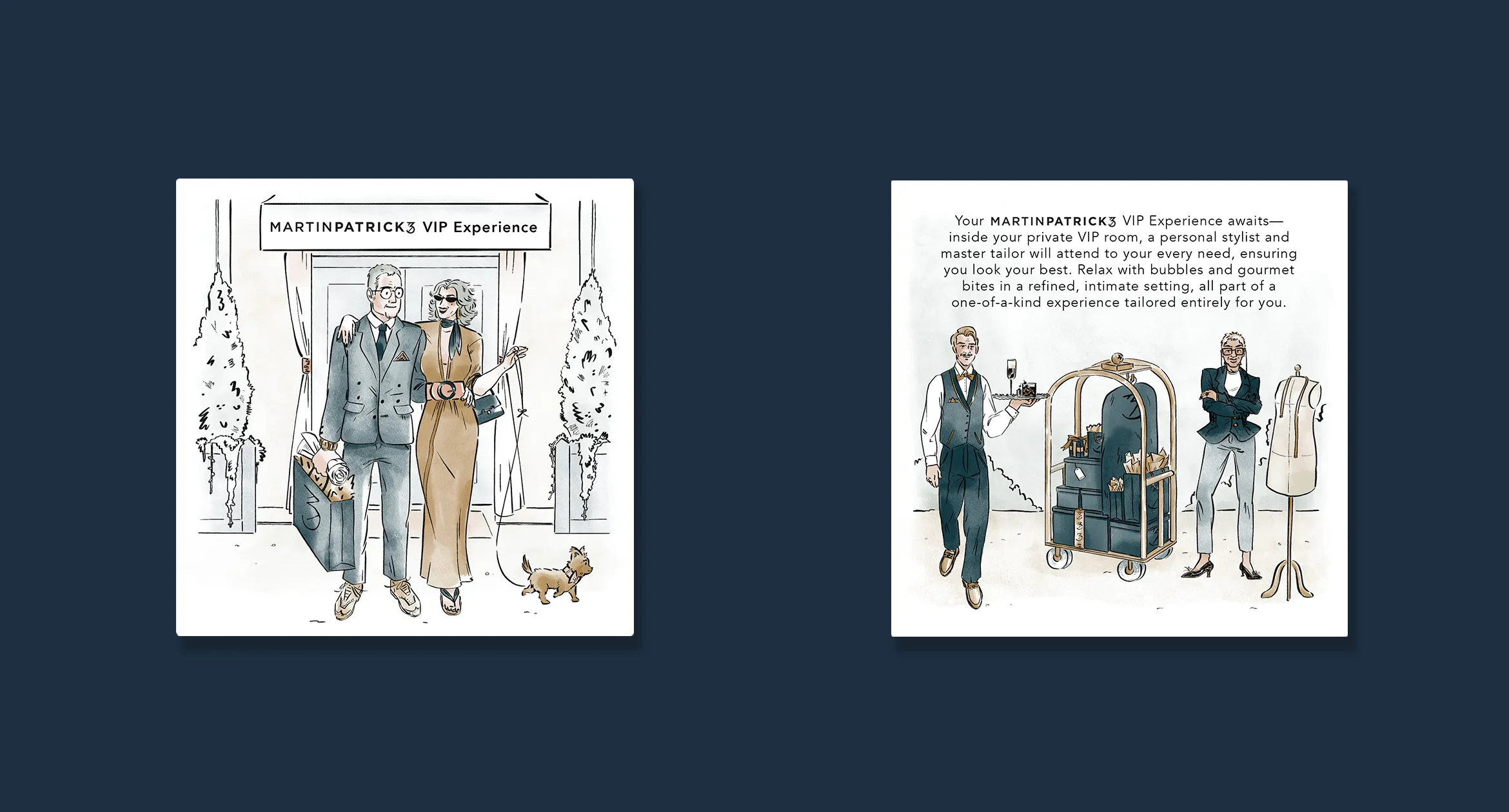VIP gift cards at MartinPatrick3 start at a minimum of $2,500—requiring a gift card experience that feels elevated, hand-crafted, and catered to our client's taste. I was responsible for product design, copy, and collaboration with the printing press for a successful result.